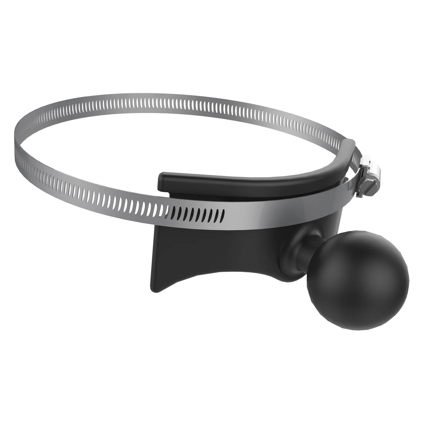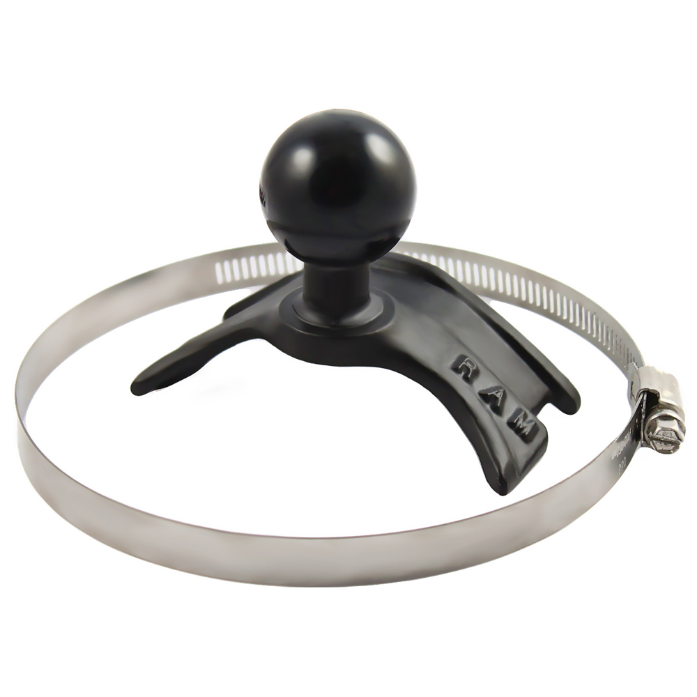 The RAM-118BU provides a C size ball that can be semi permanently strapped to any found post between 4″ and 5.5″ in diameter. Also can be used to secure a trolling motor torpedo for rough water conditions.