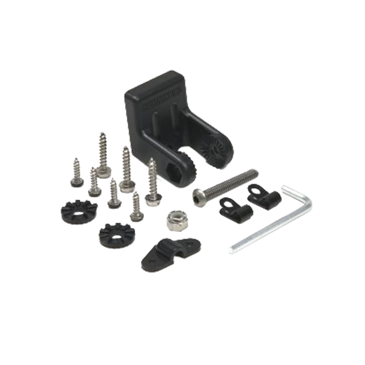 The Humminbird MHX XNTF Transducer Bracket and Mounting Hardware for XNT transom mount transducers. This is the FIXED mount without the kick-up option.