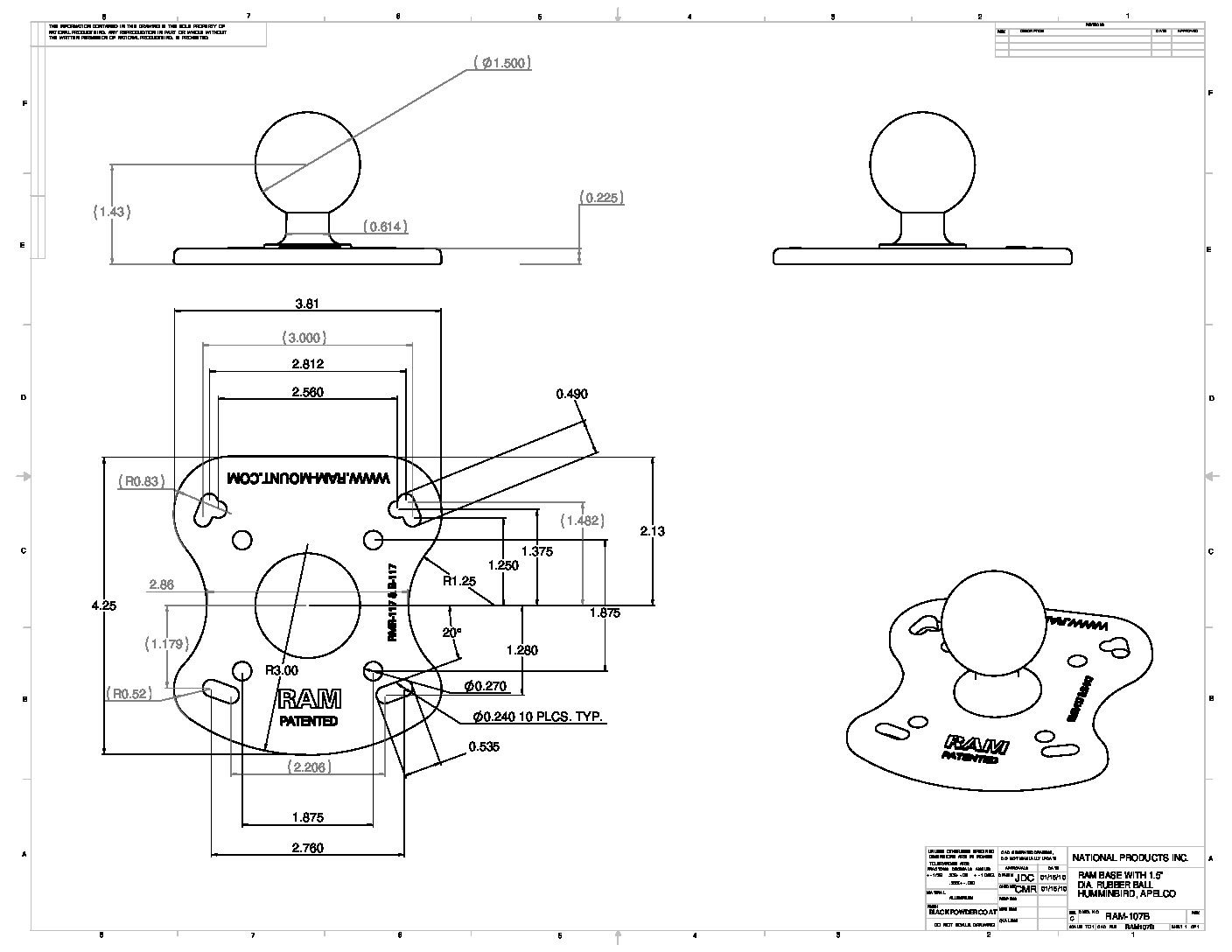 The RAM-107U consists of a double socket arm, 2.5″ diameter round base with the universal AMPS hole pattern and connecting Humminbird/Apelco marine adapter base. The mount is designed with a RAM 1.5″ diameter patented rubber ball and socket system that has adjustment points at both ends of the double socket arm; this allowing for almost infinite adjustment and perfect viewing angles.Rubber ball and socket technology allows for almost infinite adjustment and perfect viewing angles. Made with powder coated marine grade aluminum